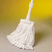 Autoclavable high-capacity, seamless, tubular-knit polyester mop performs with all wring-bucket systems for floor cleaning and applying disinfectants in critical environments.